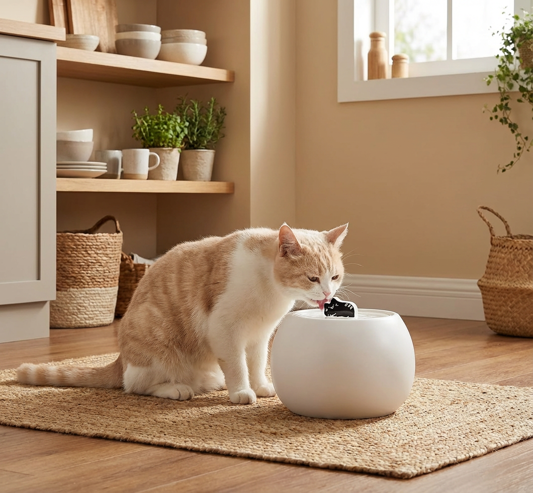 Offrez à votre chat une eau propre, fraîche et irrésistible avec la Fontaine en Céramique PureFlow, pensée pour encourager l’hydratation naturelle tout en s’intégrant élégamment à votre intérieur.