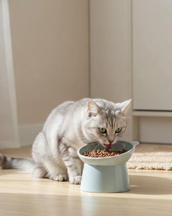 La TiltBowl est une gamelle surélevée et inclinée à 45°, spécialement conçue pour améliorer la posture de votre chat pendant ses repas.