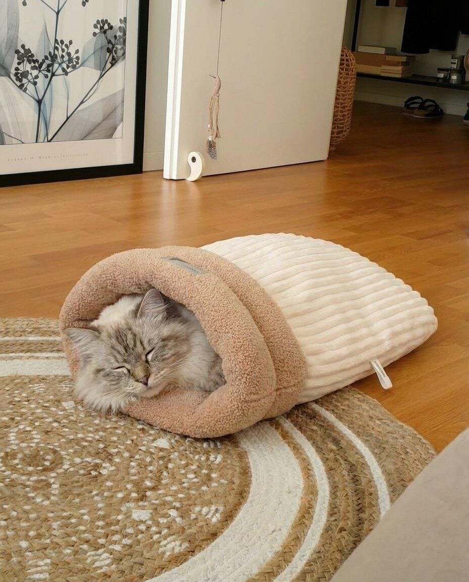 Ce panier en mode « chaussette » est incroyablement doux. Mon chat s’y glisse dedans et y dort pendant des heures. Il a l’air tellement rassuré.